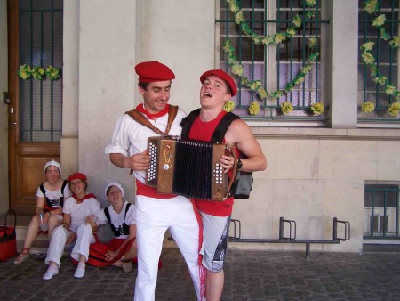 Accueil > Félibrée à Saint Foy la Grande - Juillet 2006 > Les siamois - 2 têtes, 2 mains, 3 jambes.jpg
