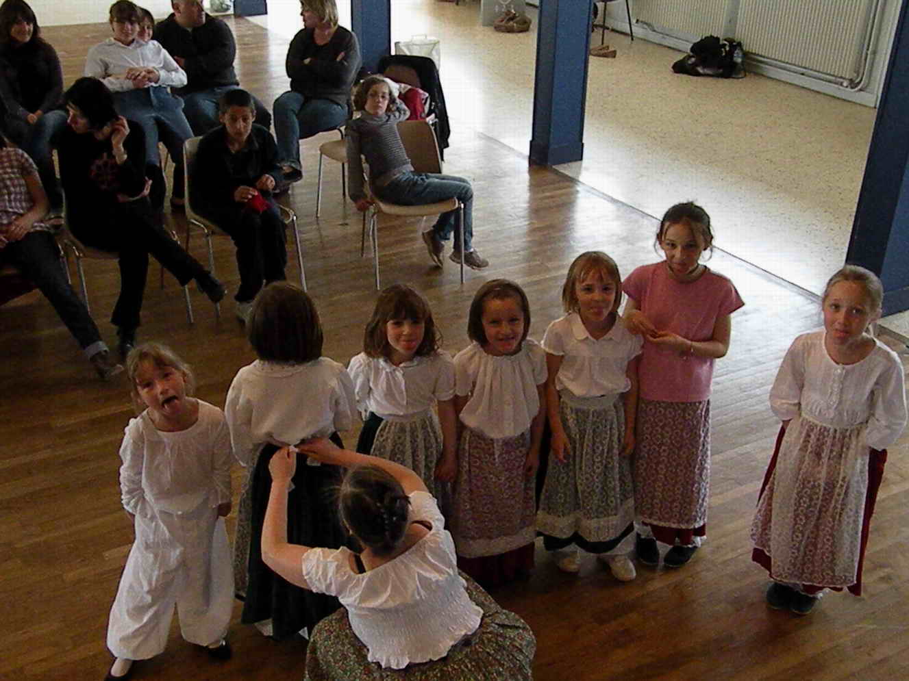 Les membres de Dansons l'Europe étaient réunis pour la répétition général du spectacle 2010. Au programme : chorégraphie, répétition sur scène en costume devant un public improvisé de parents. Public qui a mis la main à la pâte en participant aux ateliers coutures (merci les parents !) le tout dans la bonne ambiance !